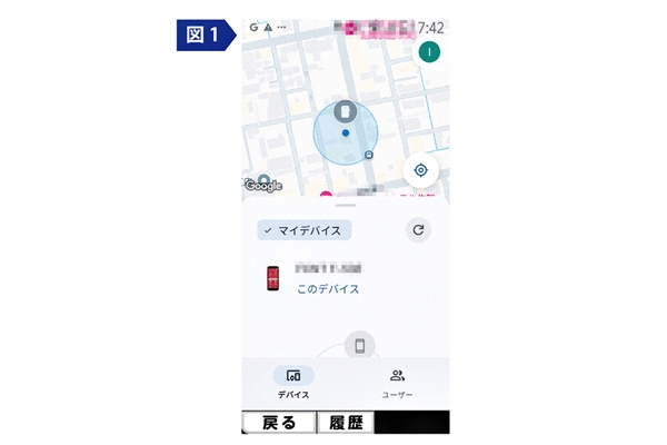 次に、位置情報がオンになっているかを確認します。[設定]から[位置情報(位置情報アクセス)] を開き[位置情報(位置情報機能)]がオンになっていることを確認してください。あとはFind Hubを開けば図(1)のように、今持っているデバイスが表示されます。